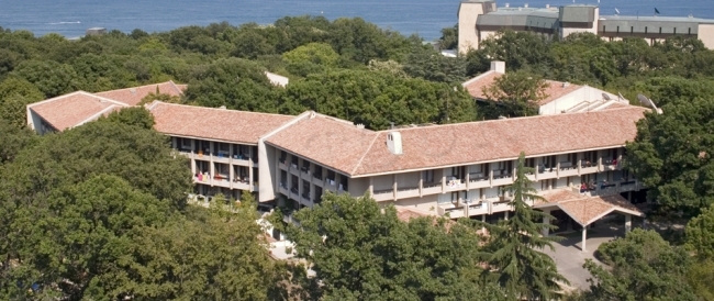 Отель находится в курортном комплексе Золотые Пески и окружен зеленью. По близости находятся магазины и заведения для развлечений в центре курорта. Отель состоит из двух частей, соединяющихся с лобби баром. Крытый проход ведет прямо в бальнеологический центр отеля Амбасадор. Здание отеля состоит из трех этажей. В 3 минутах ходьбы от отеля останавливается местный автобус. До бассейна Акваполис 700 метров. Поездка на автомобиле до города и аэропорта Варна занимает 30 минут.
