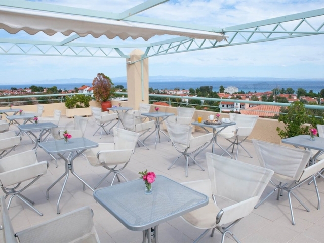 До ближайшего пляжа — 600 метров. Пляж Ханиоти находится в одноименном поселке на полуострове Кассандра в Халкидики, Греция. Это небольшой пляж с желтым мягким песком, и подходит как для семейного отдыха с детьми, так и для активных развлечений. Пляж оборудован всем необходимым для комфортного отдыха. Берег окружен парками и живописной сосновой рощ