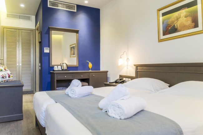 Отель расположен рядом с древними воротами Пантократора и работает круглый год. Из окон открывается вид на море, венецианские стены и Старый город. Отель подходит как для бизнес-поездок, так и для отдыха. Отель был полностью отремонтирован в 2017 году.