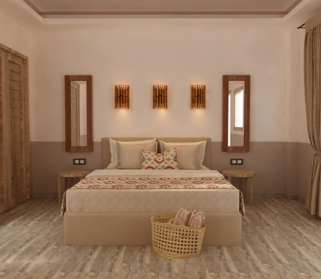 Двухместные номера с 2 кроватями или с 1 двойной кроватью, апартаменты с 2 спальнями (38 м2), мазонетты (150 м2) и семейные номера с 2 спальнями на 4-5 человек.