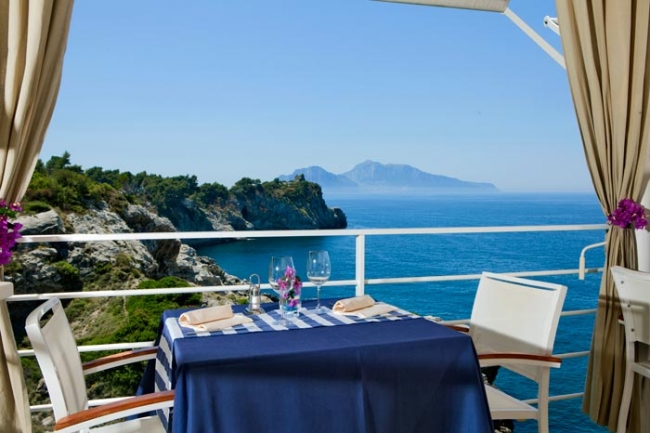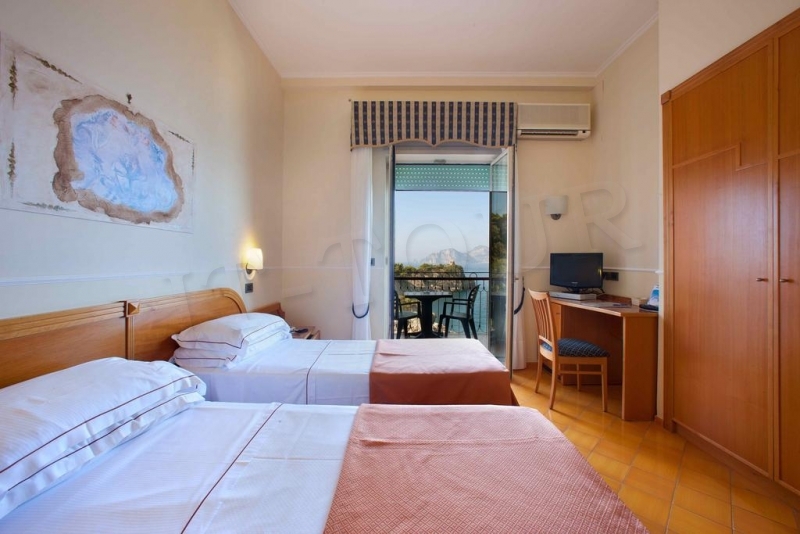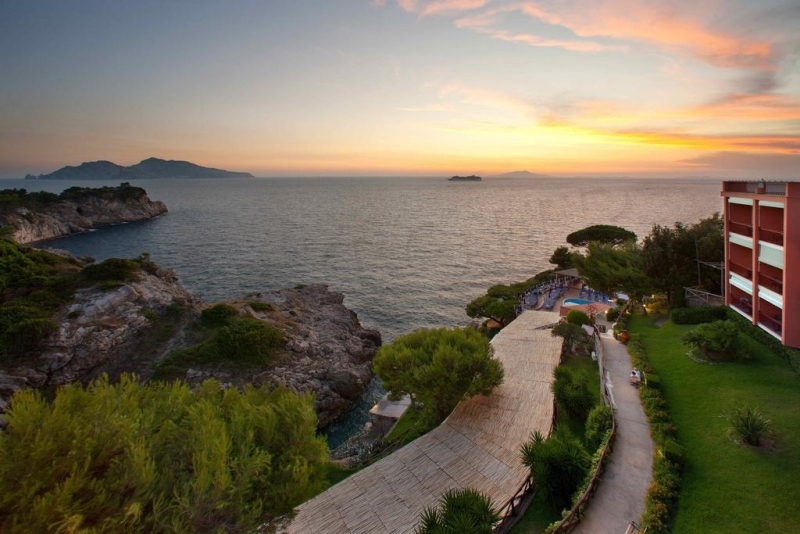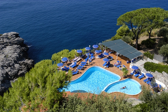 Отель построен в 1970 г., последняя реконструкция прошла в 2011 г. Расположен всего в 7 км от Сорренто, на отвесной скале, с террасы и из номеров отеля открывается захватывающий панорамный вид на Амальфитанское побережье и остров Капри. У гостей есть возможность пользоваться услугами частного пляжа, к которому можно спуститься по лестнице, высеченной в скале. Интерьеры номеров и общих помещений выдержаны в средиземноморском стиле. Это идеальное место для тех, кто любит природу. Отель подойдёт для спокойного романтического отдыха. В городе Масса–Лубренсе, в 7 километрах от Сорренто, ж/д вокзал расположен в 9 км, расстояние от аэропорта — 61 км. Positano (20 км), Isola di Capri (25 км / 1 час на пароме), Pompei - Ercolano (35 км), Amalfi (38 км), Ravello (44 км), Napoli (60 км).