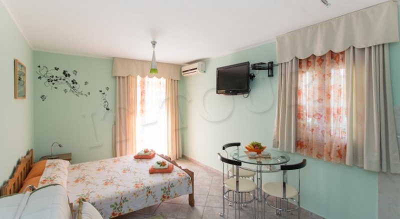 В отеле 2 двухкомнатные квартиры (2+2), 4 номера-студио (2+1), номера на 1-3 чел. на втором этаже, есть семейные номера.