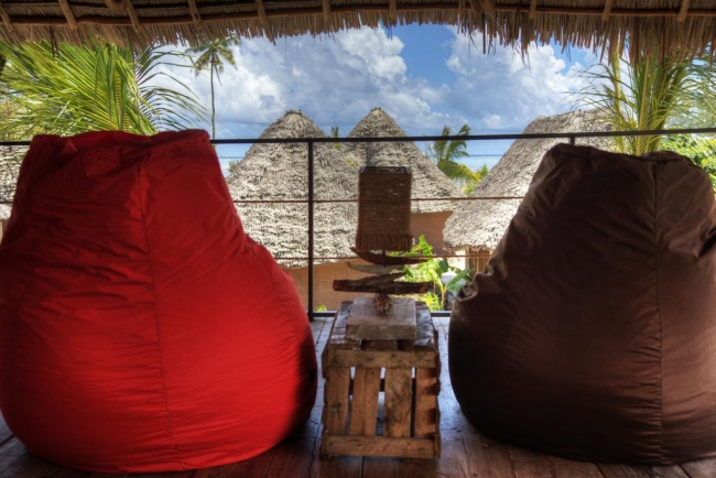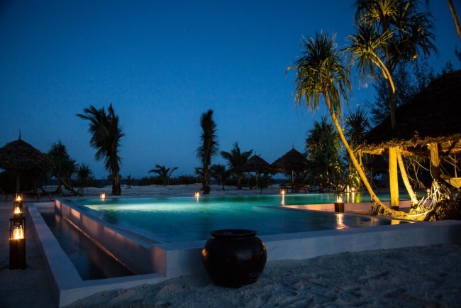 Небольшой и очень уютный бутик-отель Mwezi что на языке суахили означает «луна», состоящий всего из 12 бунгало, из всех открывается замечательный вид на океан и бассейн. Отель расположен очень удачно, на отдалении от деревни Джамбиани, в 41 км от города Занзибар.