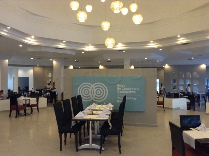 Ресторан Dar El Hana: завтрак 06:00-10:00, обед 12:30-14:30, ужин 19:00-21:30. Шведский стол. Ресторан Cafe Concert: поздний завтрак 10:00-11:00, закуски 16:30-17:30, поздние закуски (для поздно заезжающих гостей) 21:30-23:30. Тунисский ресторан (бесплатно). Рыбный ресторан (бесплатно). Часы работы 19:00-22:00. Необходима предварительная резерв