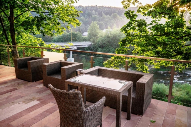 Отель расположен на берегу реки Прут в городе Яремче. Построен в 2006 году. Отель идеально подойдёт для отдыха и проведения конференций и банкетов. В 100 метрах от отеля находится водопад Пробой. 30 км от горнолыжного курорта Буковель. 3 км от железнодорожного вокзала Яремче. 70 км от аэропорта Ивано-Франковска.